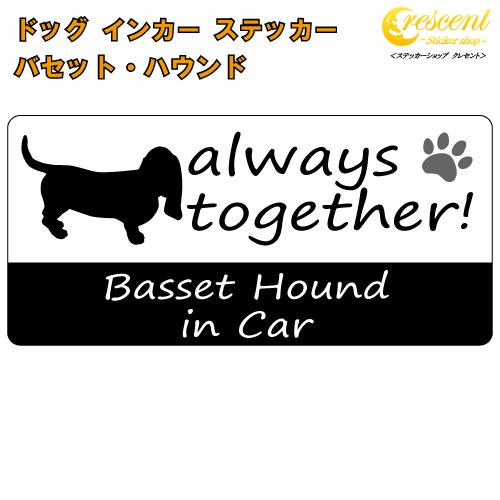 愛犬との楽しいドライブ♪そんな気持ちをステッカーにしました♪バセットハウンド basset hound in Car ステッカー プリントタイプ 【dog in car ドッグ インカー 犬 シール デカール】