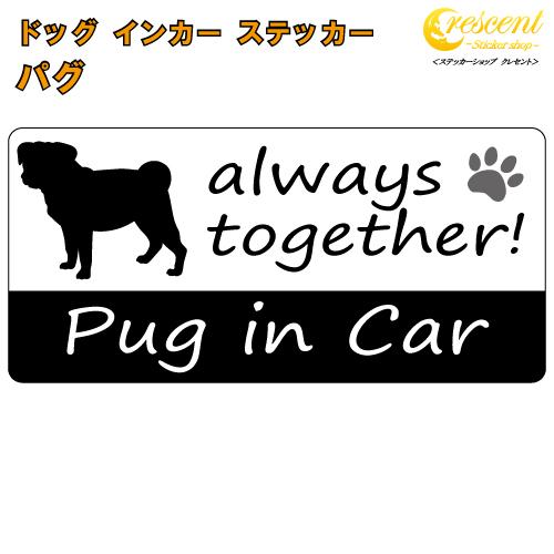 愛犬との楽しいドライブ♪そんな気持ちをステッカーにしました♪パグ pug in Car ステッカー プリントタイプ 【dog in car ドッグ インカー 犬 シール デカール】