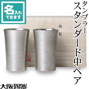 送料無料 名入れ 錫製 タンブラー スタンダード中ペア 大阪錫器 桐箱入 ビールグラス ビアグラス ビアカップ 父の日 還暦祝い ギフト 記念品 プレゼント 母の日